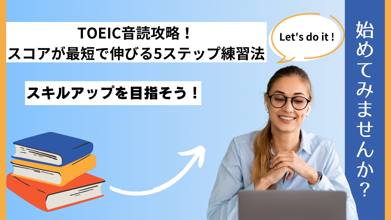 TOEICスコアが伸び悩む人は、「音読でTOEICスコアが伸びる5ステップ練習法」を取り入れてみると良いでしょう。理由は下記の5つになります。